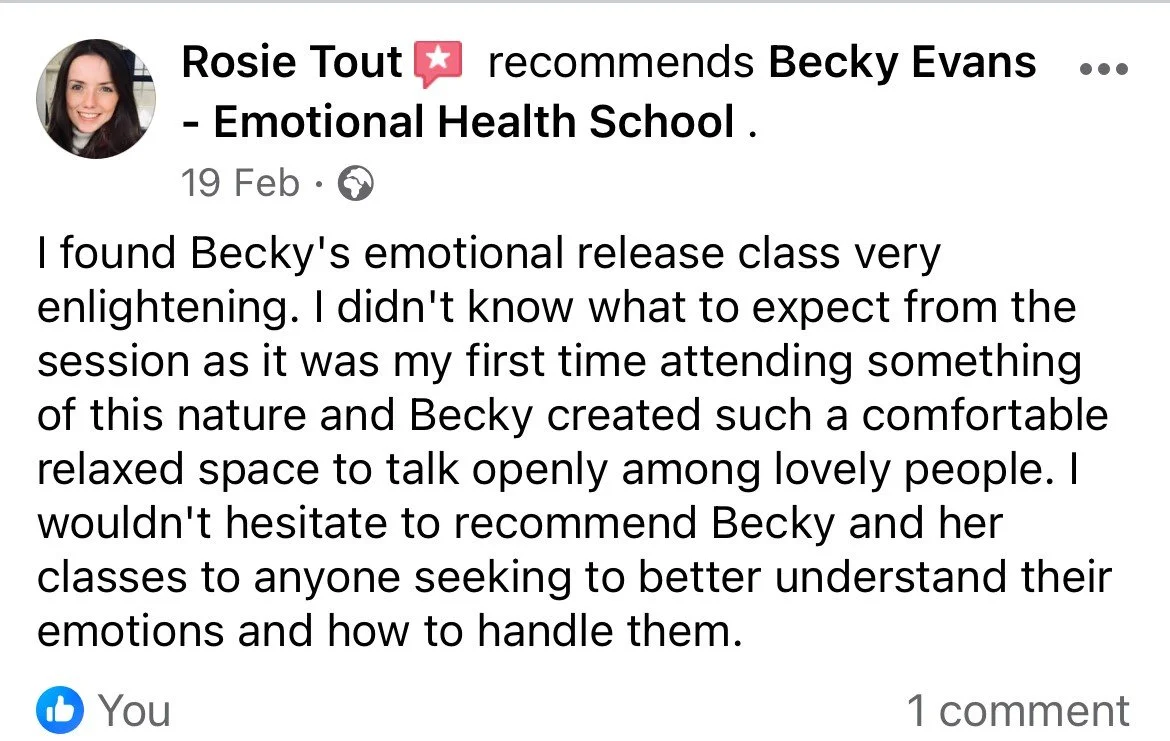 Hello, I’m Becky. Having experienced first hand the devastating effects of disconnection, burnout and overwhelm for 18 years, I now focus on helping ambitious women to feel emotional balance and genuine fulfilment. Leaving behind my 8-year career in corporate that I loved, I’ve committed my life to guiding others who are ready to begin or deepen their emotional journeys. My mission on this planet is to empower them to feel, let go and to cultivate inner peace. (P.s - there’s WAY more detail in the training!)
